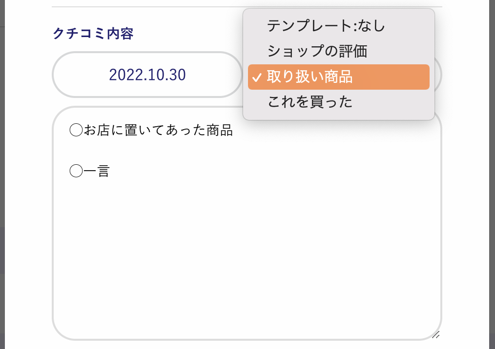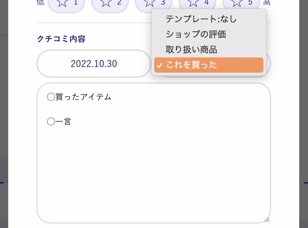クチコミの内容がイメージできない場合に便利な3種類のテンプレート。